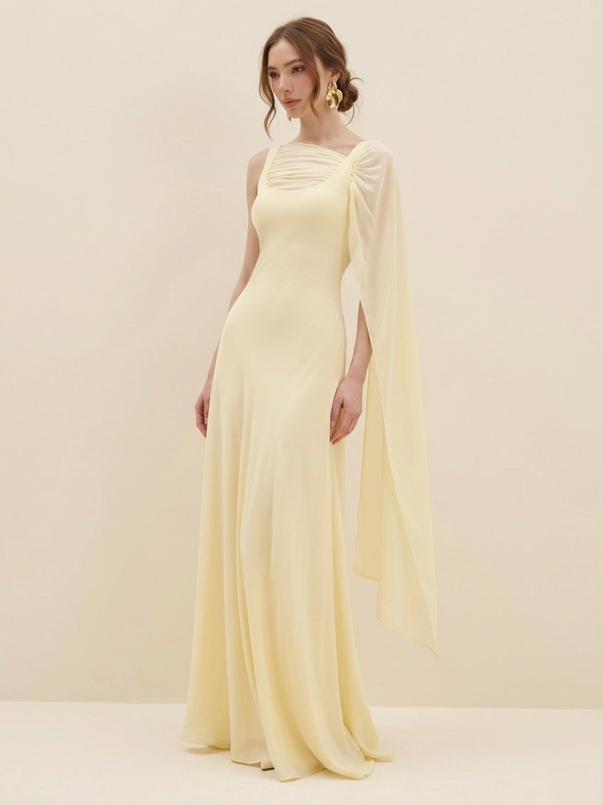- Maxi floor length silhouette